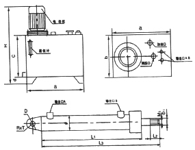 DYTF型分離式電液推桿外形尺寸及安裝尺寸: